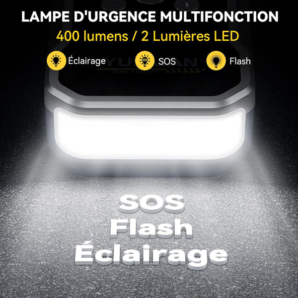 Ce booster offre une puissance inégalée de 5000A, un mini compresseur intégré pour les pneus, et un système de protection avancé, surpassant les autres en sécurité et polyvalence. Gonfler vos pneus en quelques secondes grâce à son compresseur intelligent.